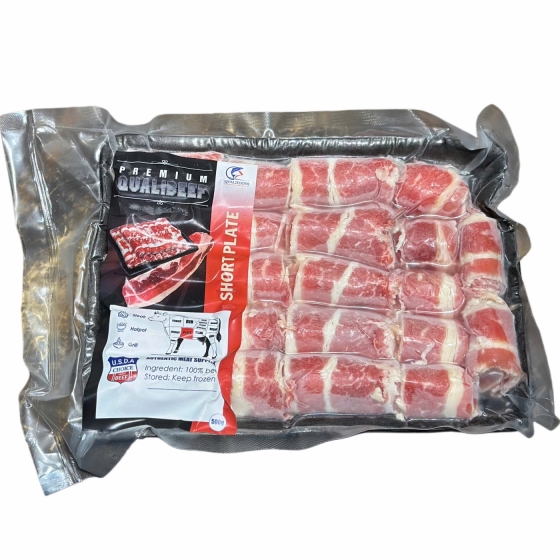 Thịt bò Mỹ nhập khẩu, từ những phần thăn nội bụng (Plate Short Rib) với vân mỡ xen kẽ tinh tế, đạt chuẩn USDA.