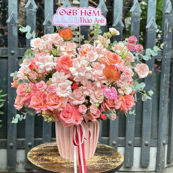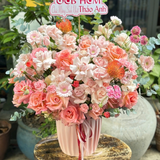 Box hoa hồng pastel hiện đại