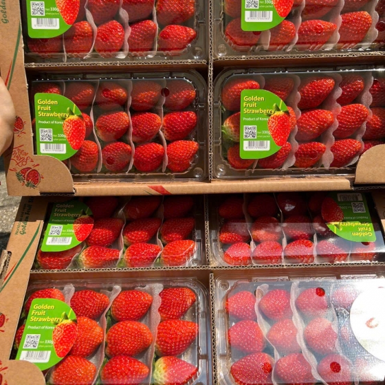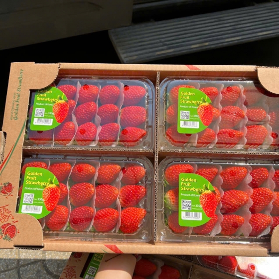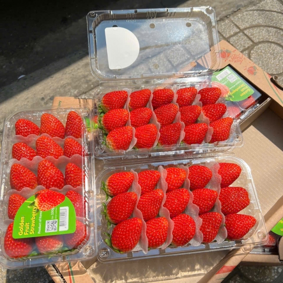 Hương vị "lạ": Không chỉ có vị ngọt đậm (độ Brix cao hơn dâu đỏ thông thường), dâu Golden còn có mùi thơm thoang thoảng của dứa hoặc đào. Vị chua gần như bằng không.
