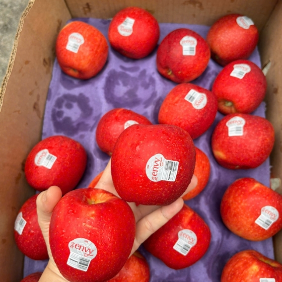 Táo Envy nhập khẩu từ Mỹ là một lựa chọn không thể thiếu cho những người yêu thích trái cây cao cấp. Điểm ấn tượng đầu tiên chính là vẻ ngoài hoàn hảo của từng trái: màu đỏ rực rỡ, đồng đều, cùng bề mặt tươi mướt và bóng trái, thể hiện chất lượng đạt chuẩn "Extra Fancy".