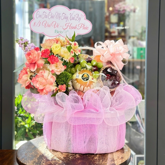 Giỏ Trái Cây Chúc Mừng Tone Hồng