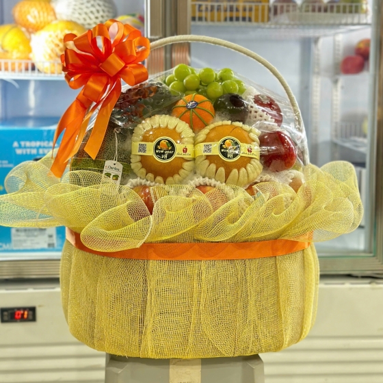 Giỏ Trái Cây Chúc Mừng Tone Vàng Nhẹ Nhàng