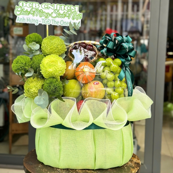 Giỏ Trái Cây Chúc Mừng Tone Xanh Nhẹ Nhàng