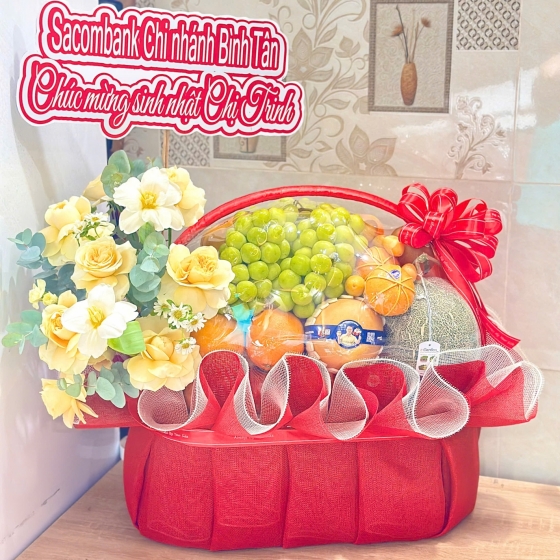 Giỏ Trái Cây Mix Hoa Size Đại Full 2 Mặt