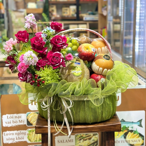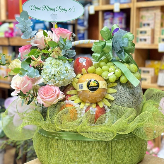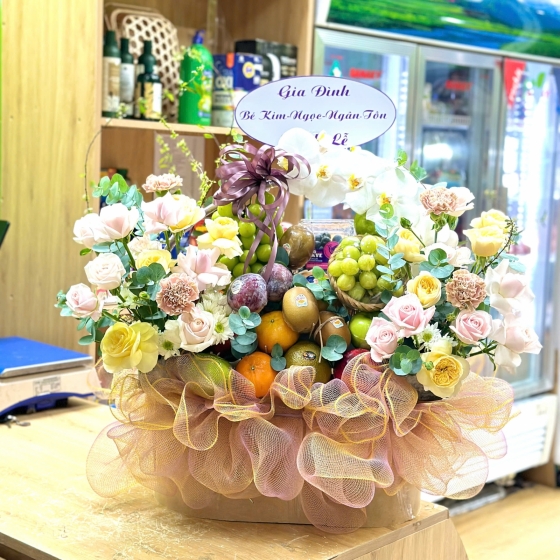 * Thiết kế tinh tế: Giỏ mây hoặc khay gỗ sang trọng, kèm nơ và ruy băng trang nhã.