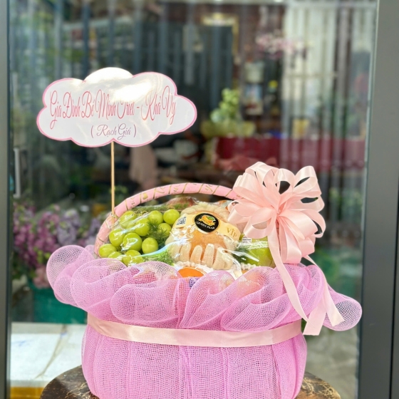 Táo EverCrisp S100: Các quả táo đỏ được xếp khéo léo phía dưới và xung quanh, mang lại độ giòn ngọt đậm đà cho cả giỏ quà.