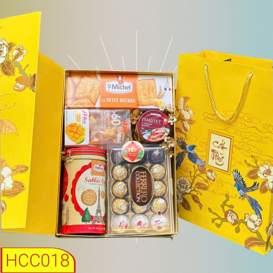 Trao gửi lời chúc Cát Tường Phú Quý và thịnh vượng đến mọi nhà qua mẫu hộp quà HCC018 đầy tinh tế với mức giá 850.000Đ. Khách hàng thường ưu tiên tìm kiếm các từ khóa như "quà Tết sang trọng" hay "hộp quà Tết ý nghĩa" để chọn làm quà tặng trân quý cho người thân, bạn bè và sếp.