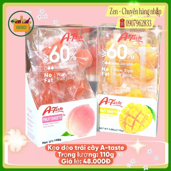 Kẹo Hongkong - Kẹo Dẻo Trái Cây A-tast Hộp 110g Vị Xoài Và Vị Đào