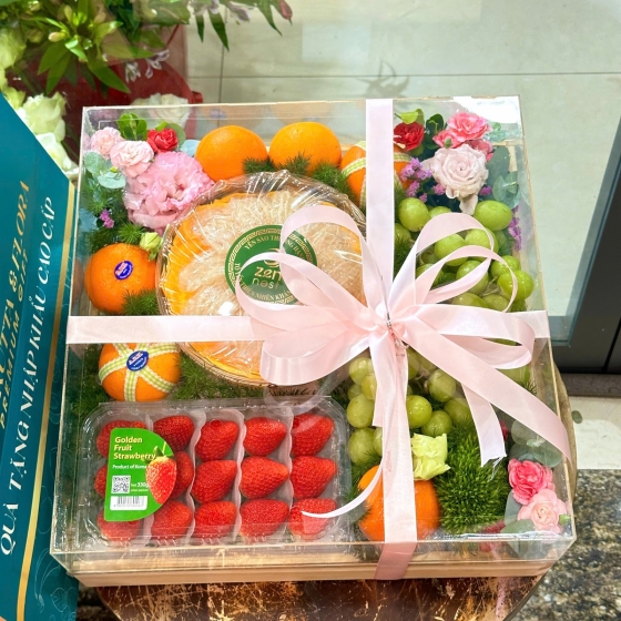 Về hình thức: Hộp quà được thiết kế trong suốt sang trọng, phối cùng hoa tươi trang nhã, nhìn ở ngoài cực kỳ bắt mắt và đẳng cấp chị nhé.