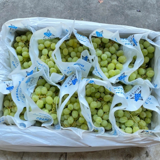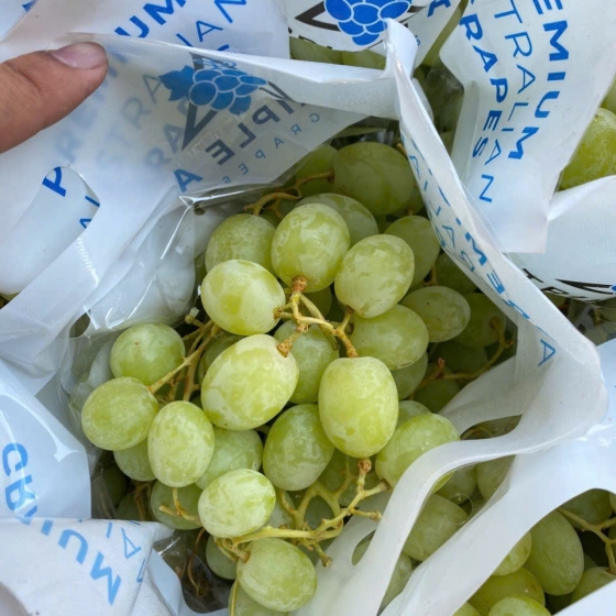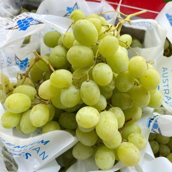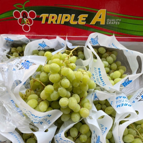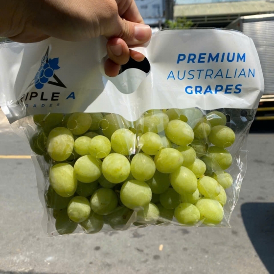 Quả to, căng mọng: Những quả nho xanh Triple thường có hình dáng tròn hoặc hơi thuôn, màu xanh hổ phách đẹp mắt, trái cứng cáp và cuống xanh tươi rói.